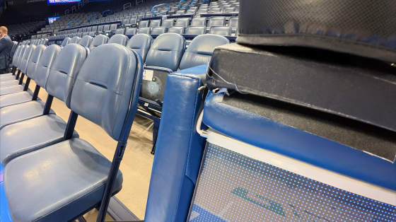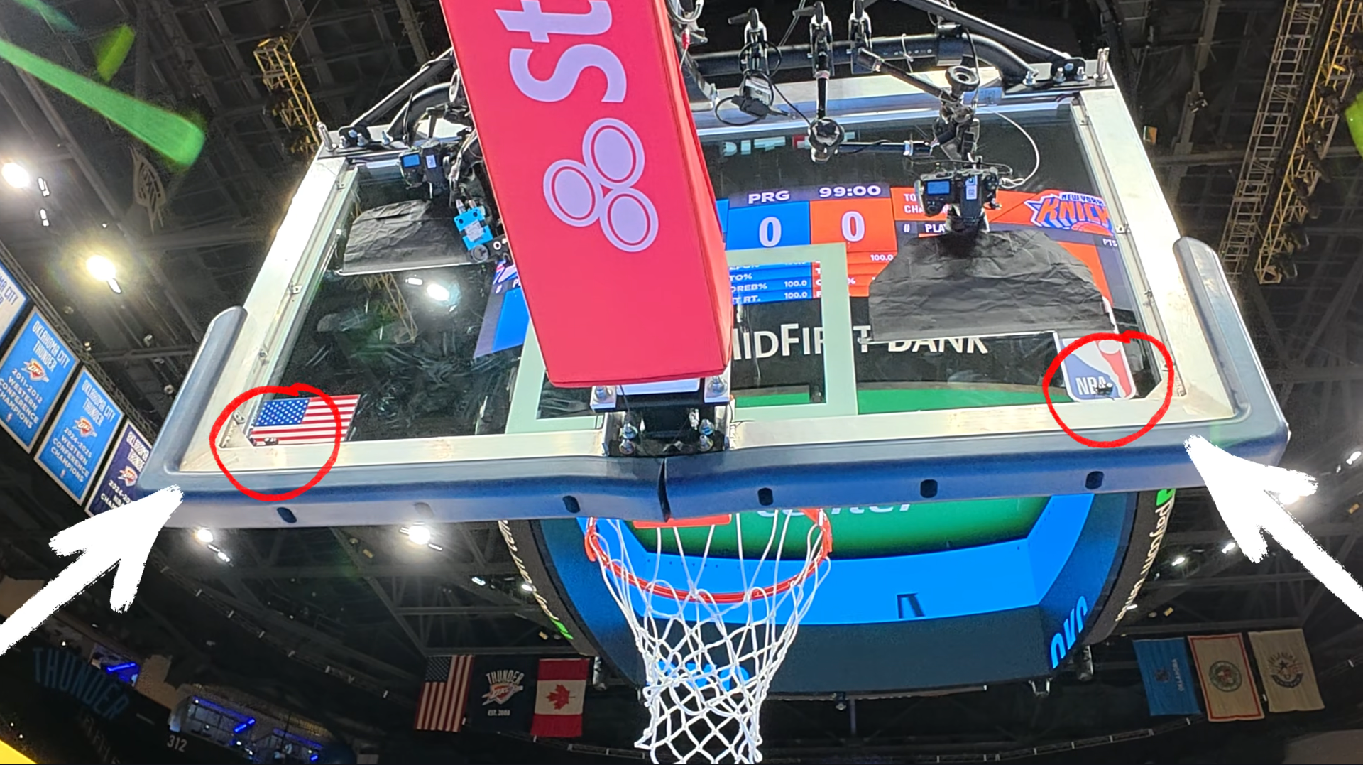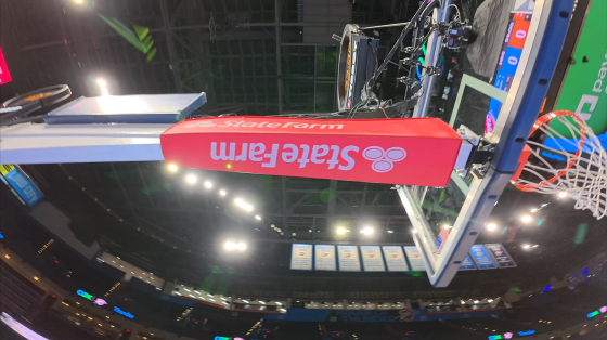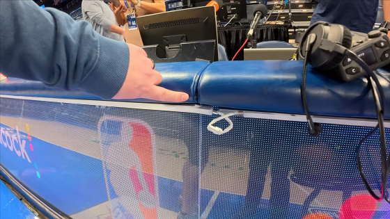 コートの反対側、つまりテレビ中継のメインカメラから見て奥側にあたる「ファーサイド」にはカメラやマイクを置ける場所が少なく、従来の中継ではドリブル音などを拾うのが難しい場所だったそうです。そんなファーサイドでマイクの設置が許可されたのがここ。