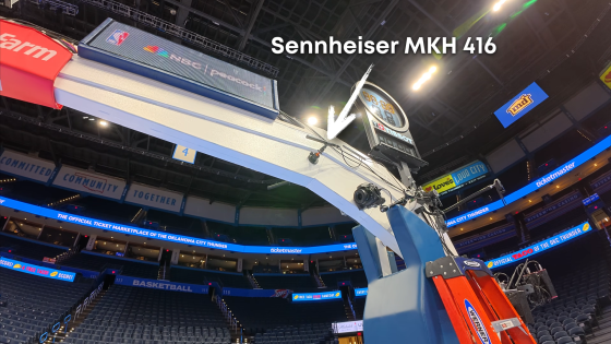 マイチャクザク氏は、ゼンハイザーの「MKH 416」とオーディオテクニカの「ATND971a」を組み合わせることで、バスケットボールで重要なキーエリアの広い範囲をカバーできると説明しています。ただし、コート上の音だけをきれいに拾うのは難しく、会場では場内アナウンスや音楽が常に鳴っているのに加えてボールが空中を飛んでいる間はバウンド音が発生しないため、マイクを増やしてもすべての音を拾えるわけではないとのこと。