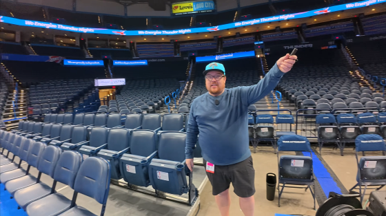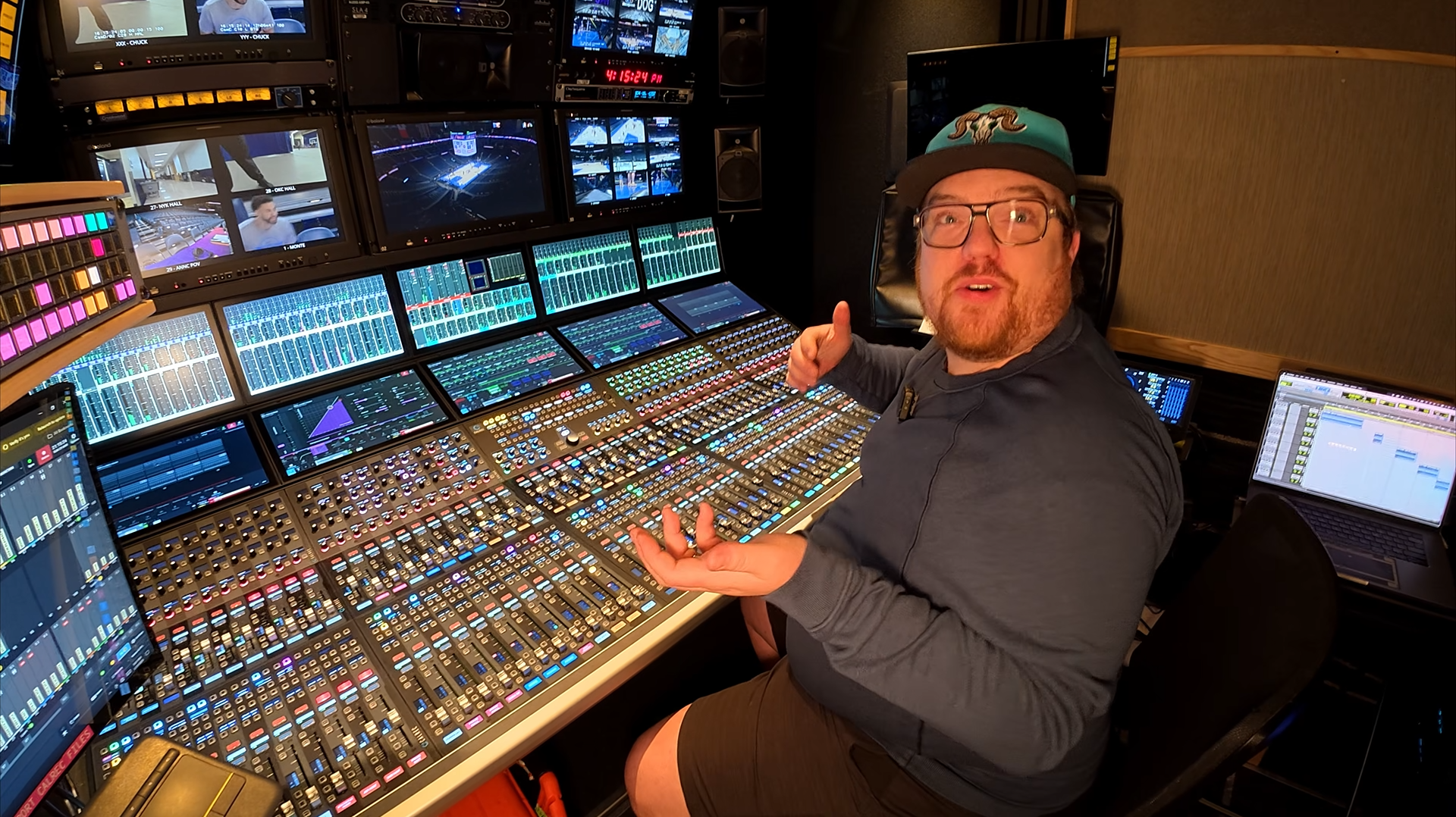 この動画は、音に関するストーリーを扱うポッドキャスト「Twenty Thousand Hertz」を制作するサウンドデザイナーのダラス・テイラー氏が自らのチャンネルで公開したものです。動画では、NBA中継の音響を担当するマイチャクザク氏がリング周辺やバックボード裏、実況席などを回りながら、実際のマイク配置やミックスの考え方を説明しています。