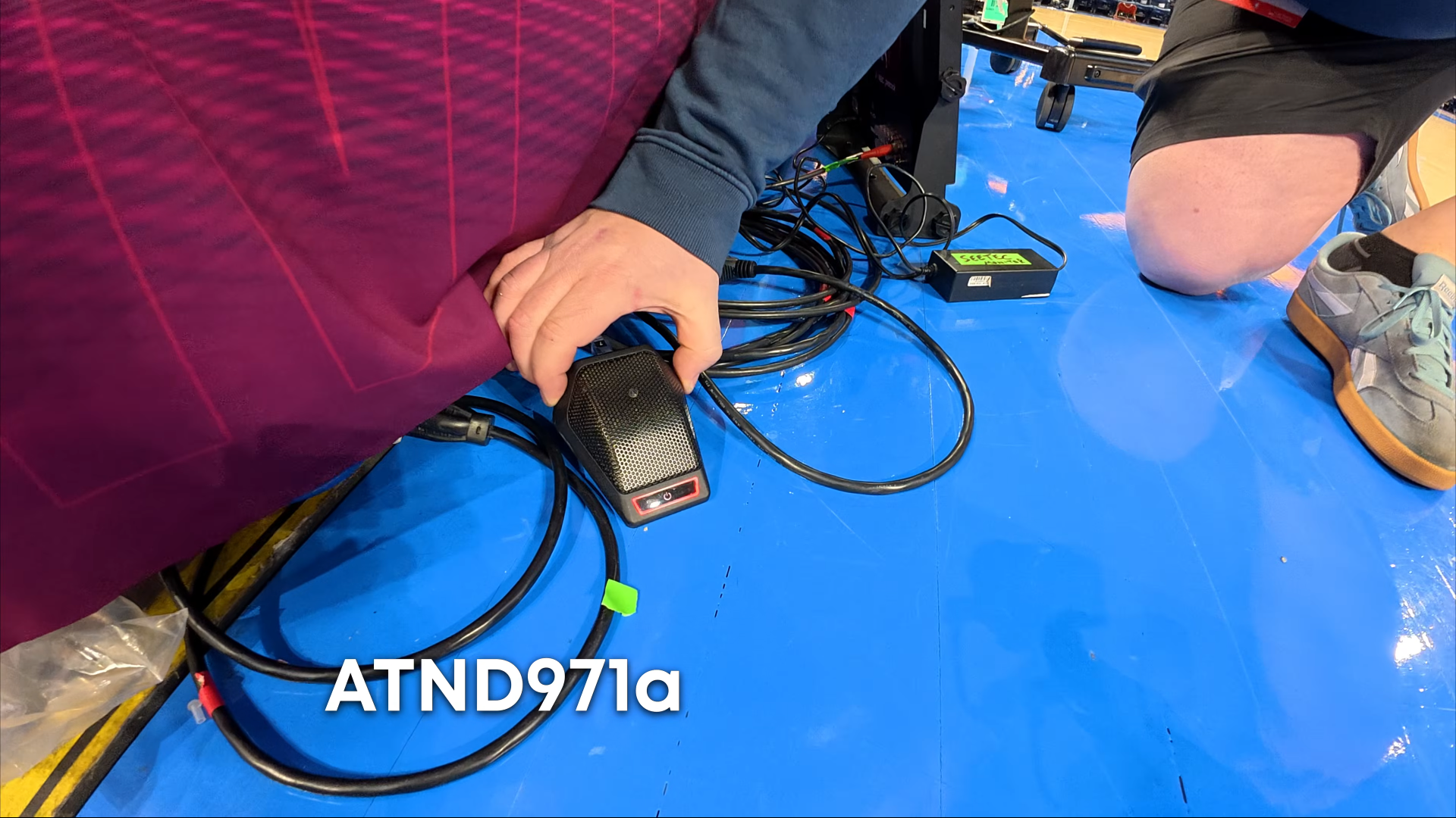 コート上の音を拾うには多くのマイクが必要ですが、試合の邪魔にならず、視聴者にも目立たない形で設置する必要があるとのこと。ケーブルは中継映像に映り込みにくいようバックボードの構造に沿わせるようにして隠され、最終的に音声機材へ接続されます。