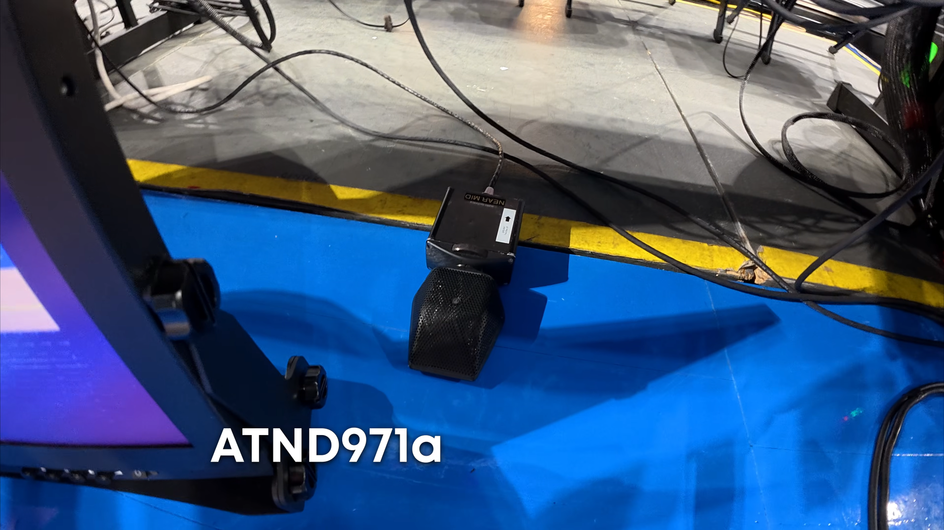 会場には観客の声を拾うためのマイクも複数設置されています。各バスケットの裏側には低い位置から観客席の音を拾うためにオーディオテクニカの「AT4050」があります。