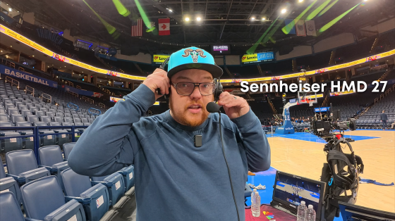 実況席ではゼンハイザーのヘッドセット「HMD 27」が使われています。