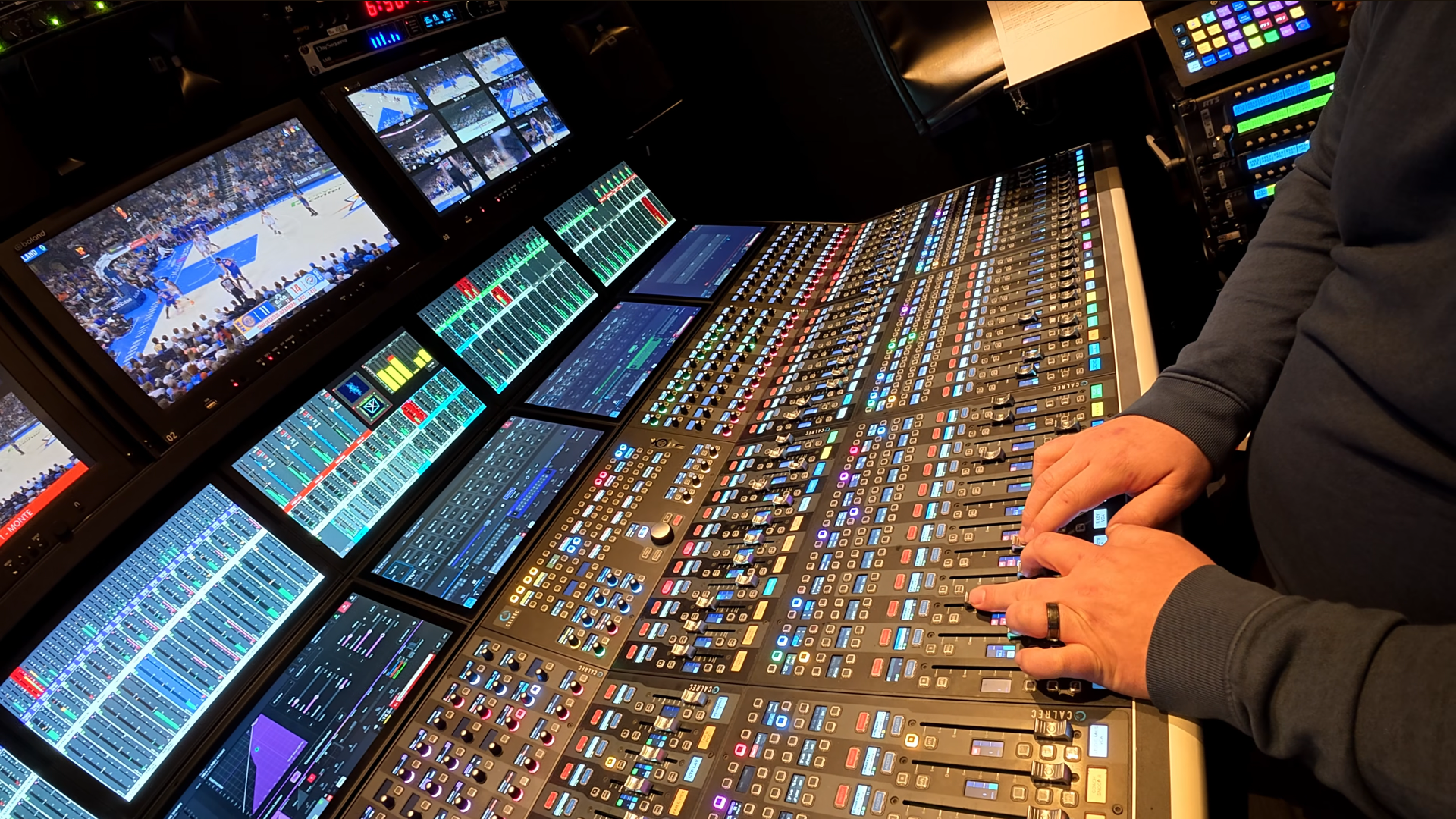 DPAの「4060」は無指向性マイクなので、正面だけでなく周囲の音を広く拾います。そのため、ネットの音だけでなくボールがリムやバックボードに当たる音や選手の声、叫び声も拾うことが可能。マイチャクザク氏は自身のミックスについて「かなり攻めた作り」と表現しており、コート上で起きている音をできるだけはっきり聞かせる方針だと言います。