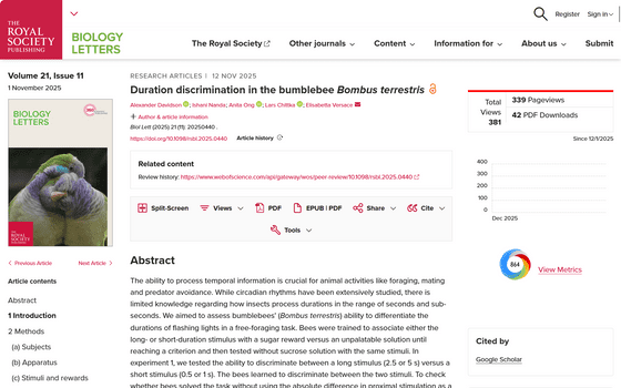 デヴィッドソン氏は「異なる点滅時間の違いを学習する姿を見られて興奮しました。ハチは自然環境で点滅する光の刺激に遭遇しないため、この課題に成功したことは注目に値します。光の持続時間を記憶できるという事実は、マルハナバチが空間内の動きの追跡やコミュニケーションなどに用いる時間処理能力を他の目的にも応用している可能性があります」と述べました。