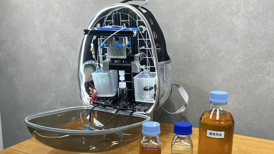 作成された装置はバックパックに収まるほど小さいことが特徴です。バイオディーゼルを収集する際の効率は最大91.14%と高く、品質は国家基準を上回っていたとのことです。