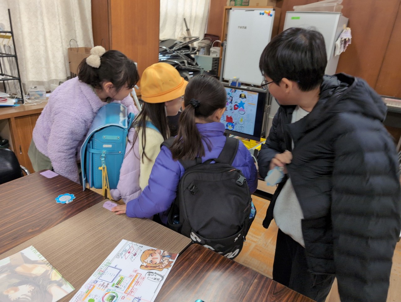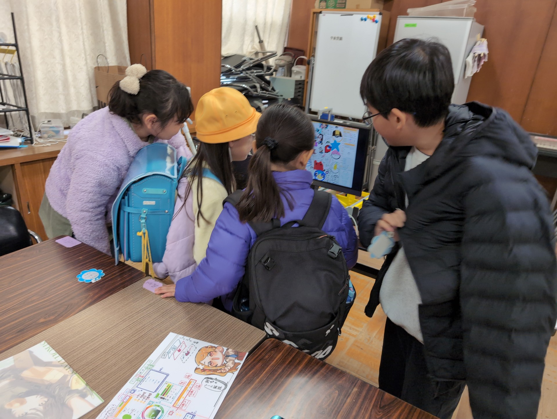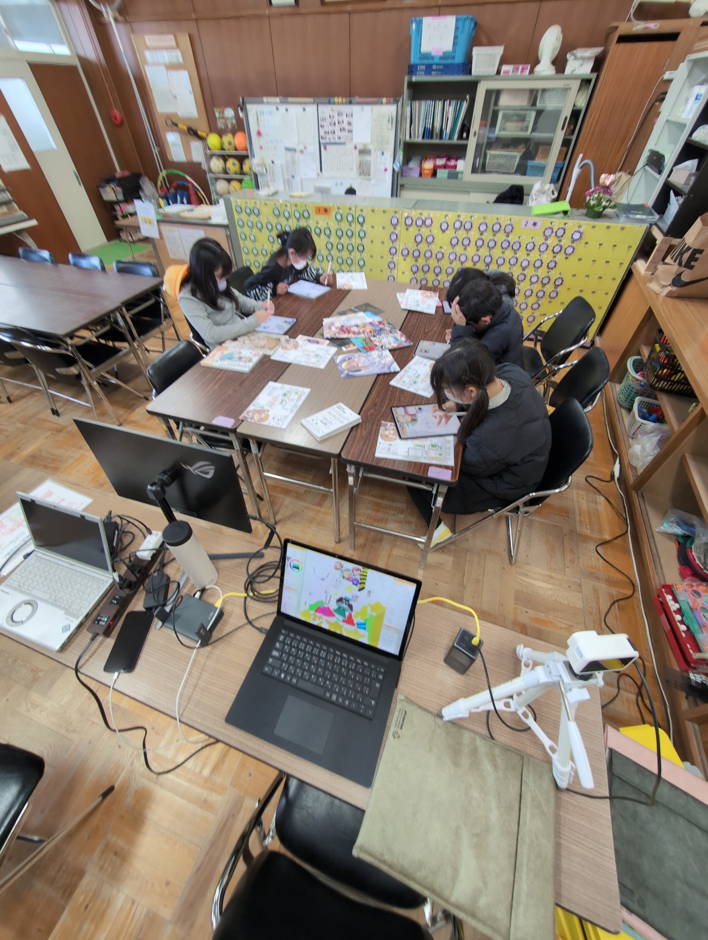 全員の状況を把握できるようにモバイルモニターも置いてあり、通りすがりの他の児童が「なにこれ!」ということで興味津々で殺到するほど。