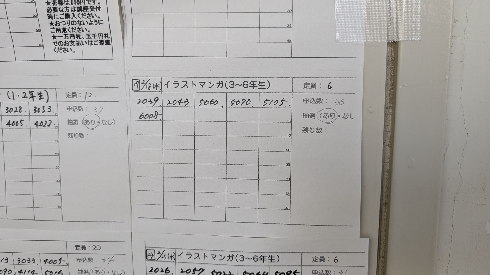 抽選発表の結果はこんな感じでずらっと貼り出されます。毎週月曜日の放課後こども教室の安全管理員もGIGAZINE編集長が担当しているので、他の放課後こども教室の人からも「めっちゃ応募来てるやん!大人気!すご!」と言われるレベル。