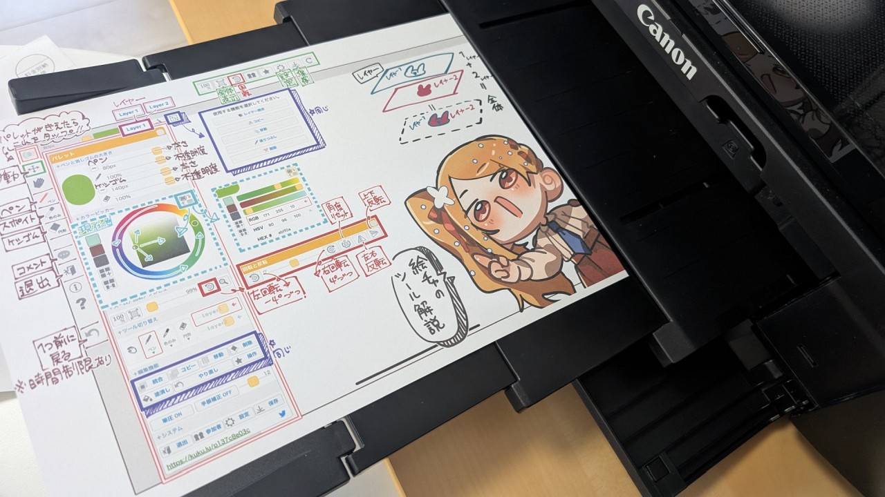 お絵かきチャットの使い方もこんな感じで印刷し、みんなに配ってわかりやすく説明。なので初心者でも安心。というか全員初心者なのでむしろ必須。こういうお絵かきをしたことがない小学生でも大体30分ぐらいでザックリ使い方が分かっていく感じです。