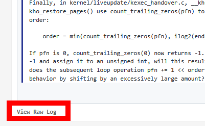 画面下部の「View Raw Log」をクリックするとAIへの入力内容と出力内容を表示できます。