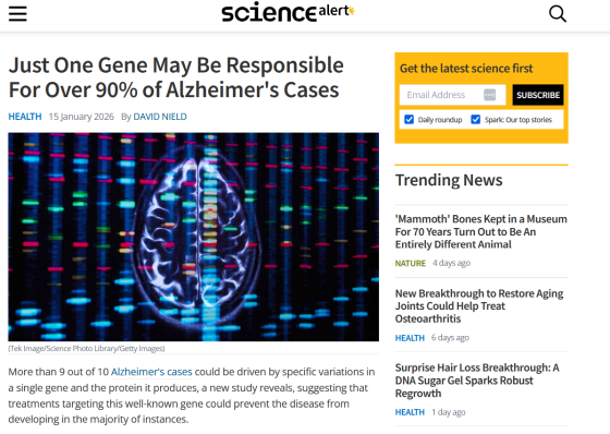 「若年性アルツハイマーになりやすい一族なのに70代まで発症しなかった女性」から新たな治療法が見つかる可能性 - GIGAZINE