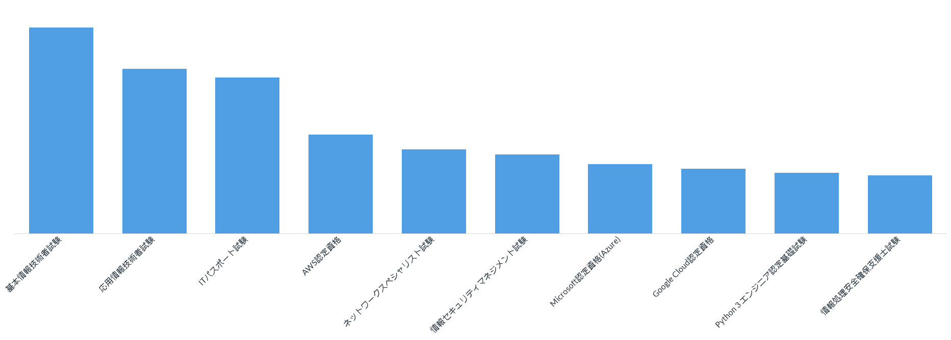 オンライン学習を仕事に結びつけるルートとして資格の取得を意識する人もいます。「IT系の資格試験で興味のあるものを選んでください」と質問した結果以下のようになりました。