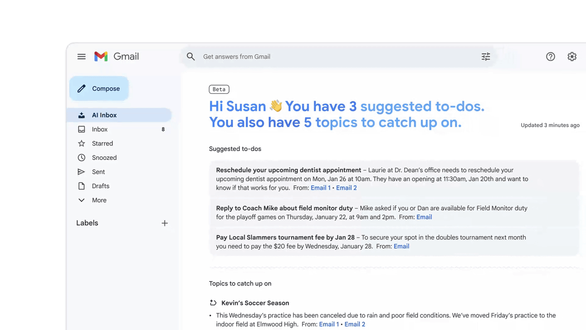 Gmail launches AI features like AI Overviews and more, made possible by Gemini 3