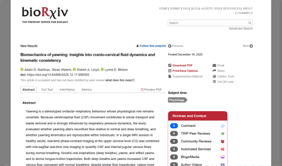 あくびは大きく口を開けて深く息を吸う動作で、眠気や退屈、疲労などを感じた時に反射的に生じます。そんなあくびが脳に驚くべき影響を与えているとの研究結果が、プレプリントリポジトリのbioRxivに掲載された論文で報告されました。