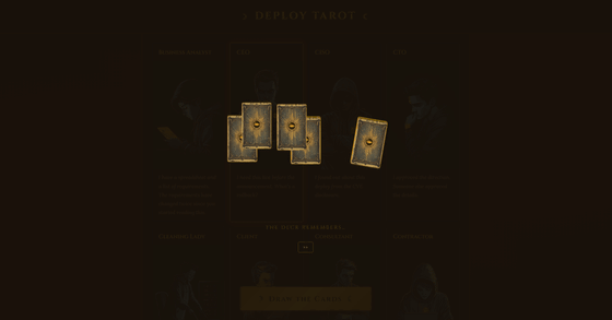 続いて、自分の役職を選びます。今回は「CEO」を選択。作業と役職を選択すると「DRAW THE CARDS(カードを引く)」というボタンが出現するので、クリックします。