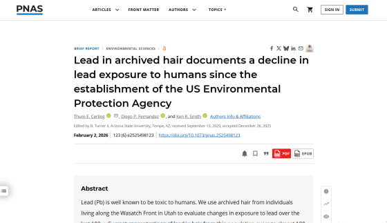 鉛は融点が低く加工しやすい金属であり、かつてはさまざまな産業や製品に使用されていましたが、近年では鉛が持つ毒性への認識が高まったことで規制が進んでいます。まだ鉛が規制されていなかった20世紀の鉛汚染がどれほどひどかったのかが、アメリカの一般家庭に残されていた「過去の毛髪」から明らかになりました。