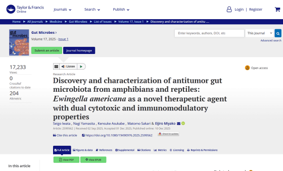 世界中の研究者が「がん」の治療方法を模索する中で、腸内細菌とがんの関係性が注目されています。新たに、日本の北陸先端科学技術大学院大学の研究チームが、は虫類や両生類の腸内細菌が強力な抗がん作用を発揮することを突き止めました。