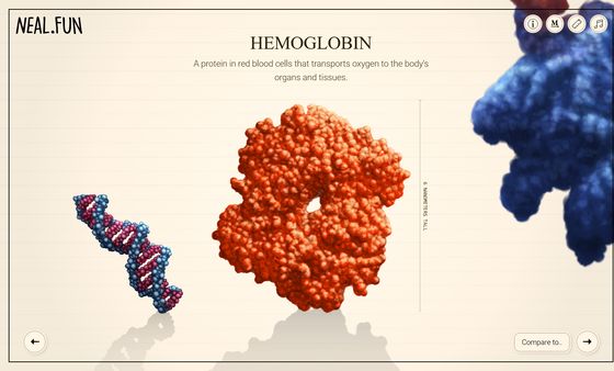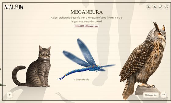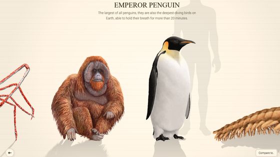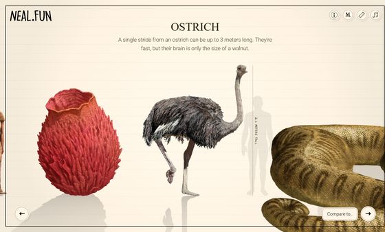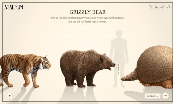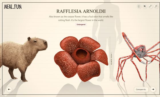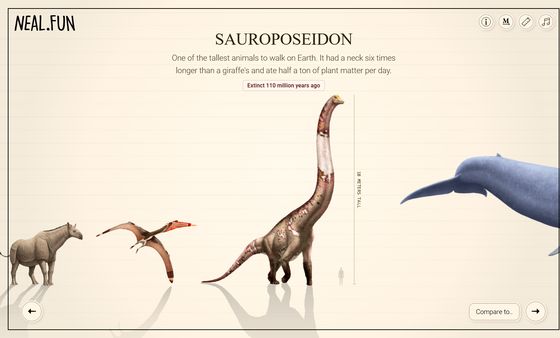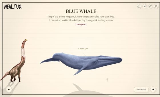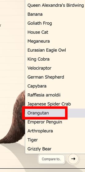 Size of Lifeでは、さまざまな生物の大きさを比較することが可能。比較したい生物を表示した状態で、右下の「Compare to」をクリック。