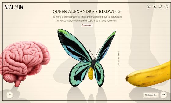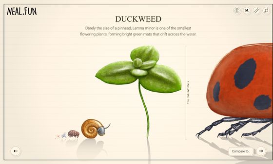 遊び心満載なウェブサイトを開発しているNeal Agarwal氏が、さまざまな生物の大きさをブラウザ上で比較できるウェブサイト「Size of Life」を公開しました。実際にSize of Lifeを使い、気になる動植物のサイズを比較してみました。