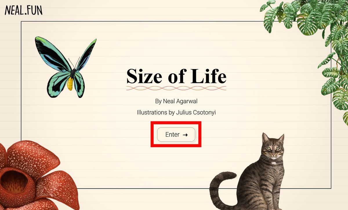 Size of Lifeにアクセスするとこんな感じ。「Enter」をクリックします。