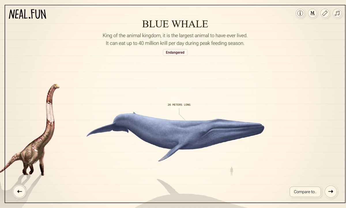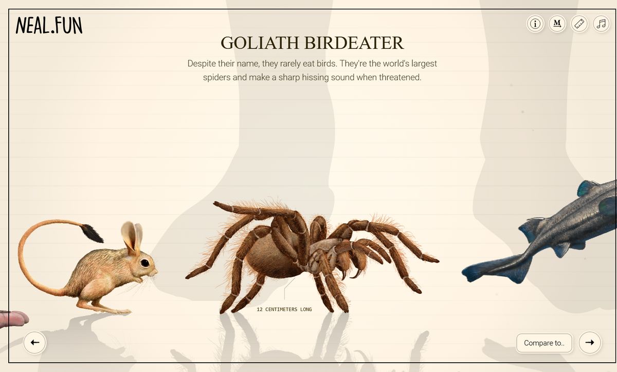 遊び心満載なウェブサイトを開発しているNeal Agarwal氏が、さまざまな生物の大きさをブラウザ上で比較できるウェブサイト「Size of Life」を公開しました。実際にSize of Lifeを使い、気になる動植物のサイズを比較してみました。