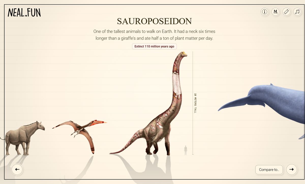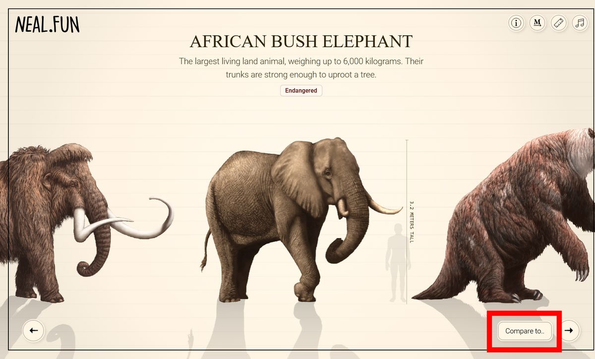 Size of Lifeでは、さまざまな生物の大きさを比較することが可能。比較したい生物を表示した状態で、右下の「Compare to」をクリック。
