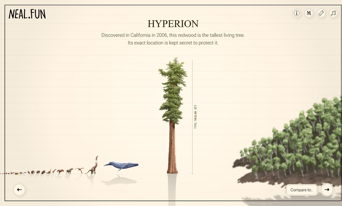 そんなシロナガスクジラより圧倒的に大きいのが、アメリカの北カリフォルニア・レッドウッド海岸にある「ハイペリオン」というセコイアの木です。高さはなんと115mに達し、世界で一番高い木として知られています。