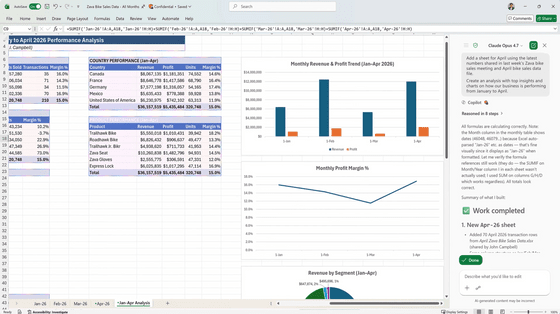Excelでは、データの探索、分析、説明から図表の作成までさまざまな動作をCopilotに任せることができます。