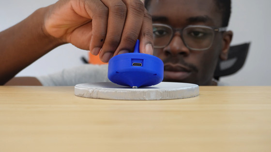 開発にあたってMusa氏は、回転を維持するための動力や回路、バッテリーを含むすべての機構をコマの内部に完結させるという制約を設けました。外部の台座側で電磁石を使って補助する方式や、接地面で直接モーターを当てて回す方式ではなく、コマの内部だけで回転を生み出すことを目標にしたのが特徴です。