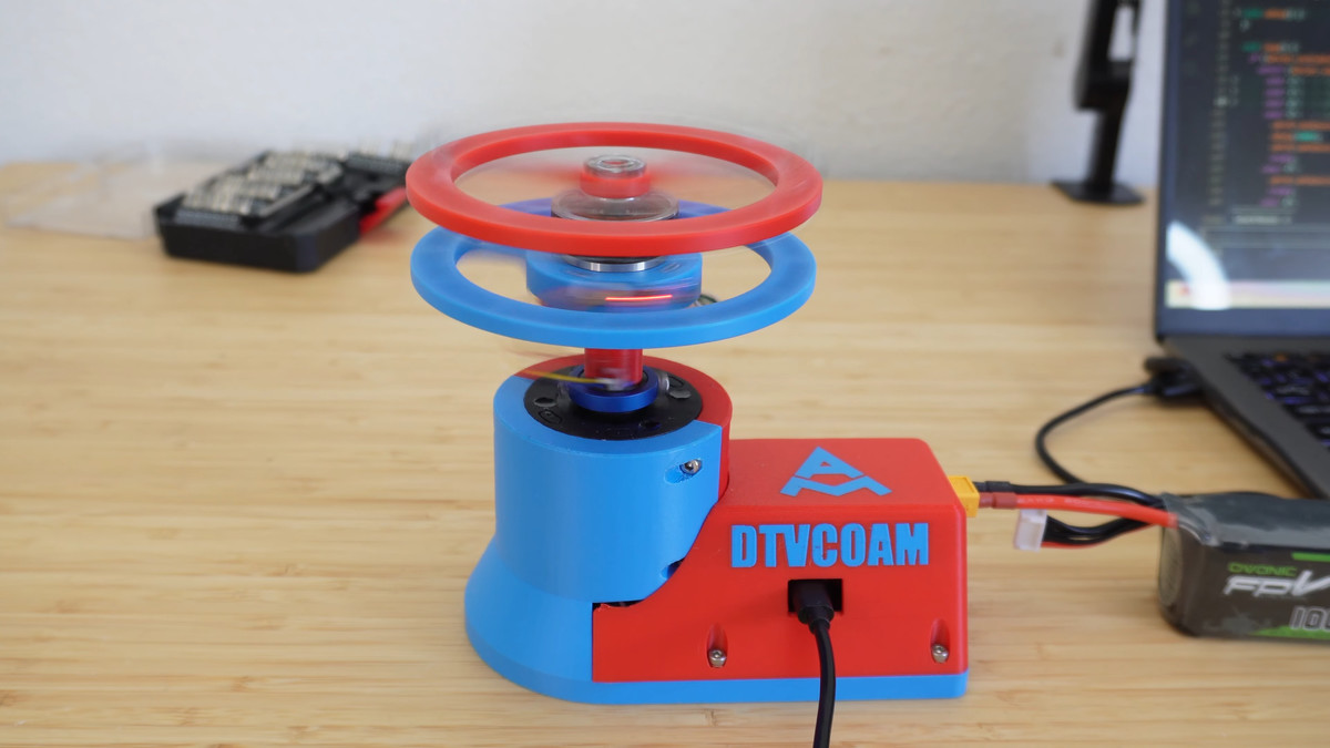 最初の発想としてMusa氏は、人工衛星の姿勢制御で知られるリアクションホイールを小型化し、角運動量保存の法則を利用してコマ本体に反作用のトルクを与える方法を試しました。小型ドローン向けのブラシレスモーターやESC(速度制御回路)、小型マイコン、3.7ボルトのバッテリーなどを組み込み、IMU(慣性計測ユニット)で状態も読める構成を前提に検討を進めます。