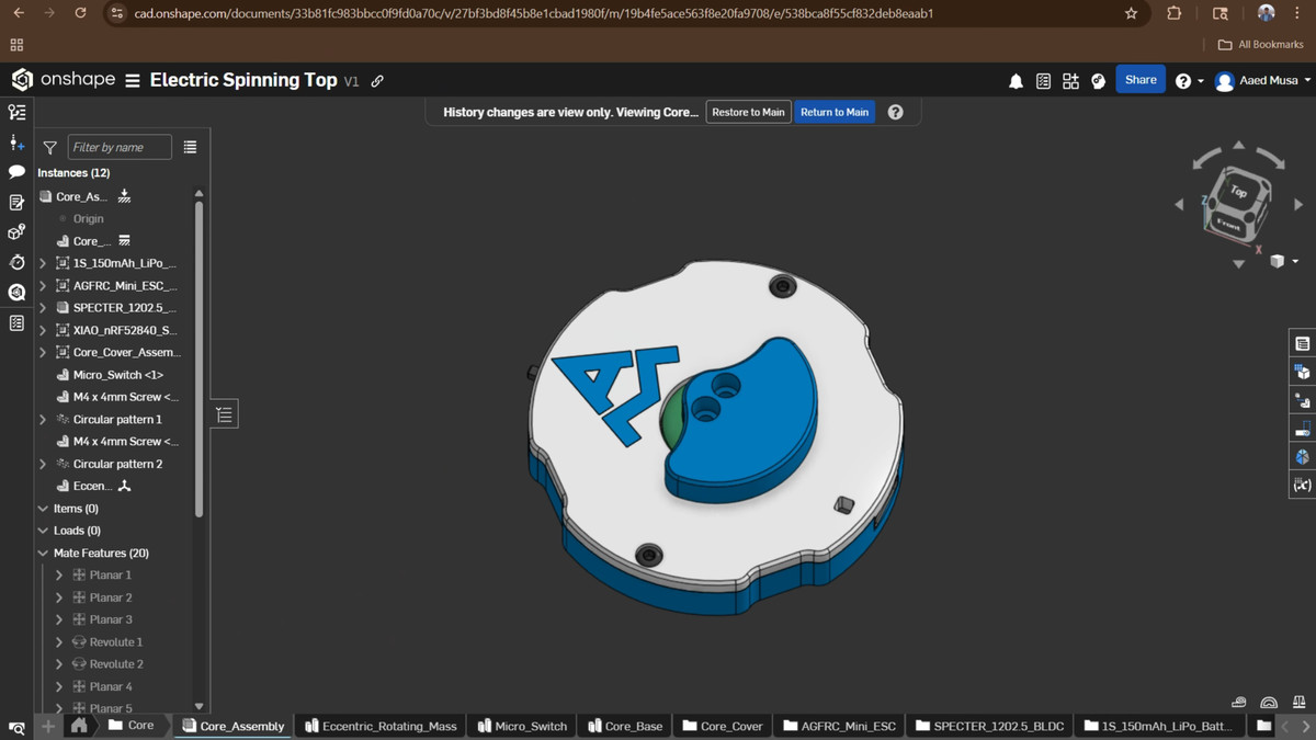 開発にあたってMusa氏は、回転を維持するための動力や回路、バッテリーを含むすべての機構をコマの内部に完結させるという制約を設けました。外部の台座側で電磁石を使って補助する方式や、接地面で直接モーターを当てて回す方式ではなく、コマの内部だけで回転を生み出すことを目標にしたのが特徴です。