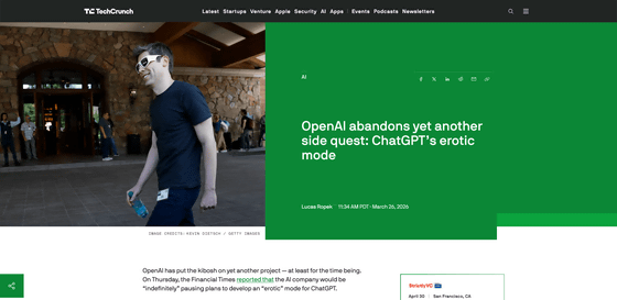 以前からリリースが噂されながらもスケジュールが複数回延期されていたChatGPTのアダルトモードについて、OpenAIが「無期限延期」して計画を棚上げしたことがわかりました。