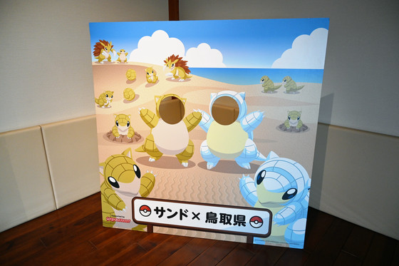 砂といえばポケモンのサンドということで、サンドとアローラサンドの顔ハメパネルも。