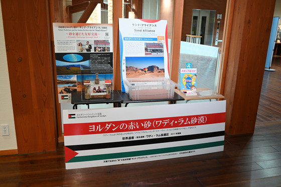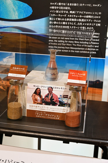 友好の証として、鳥取砂丘の砂とワディ・ラムの砂をあわせたサンドアートが作られました。