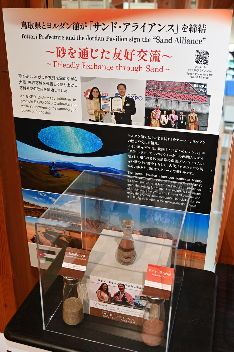 大阪・関西万博で、鳥取県はヨルダン館と「砂で砂(つな)がった友好」を深める「サンド・アライアンス」を締結。