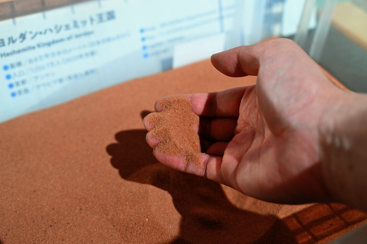 鳥取砂丘ビジターセンターではヨルダンの赤い砂が触り放題