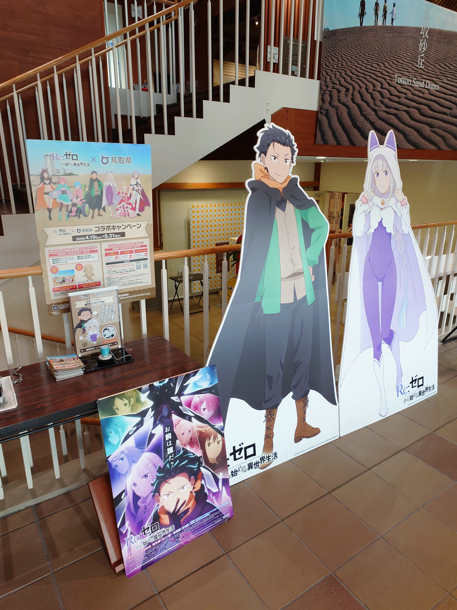 鳥取砂丘ビジターセンターは、アニメ『Re:ゼロから始める異世界生活 4th season』と鳥取県とのコラボキャンペーンの拠点の1つにもなっているので、この機会に訪れてみてください。
