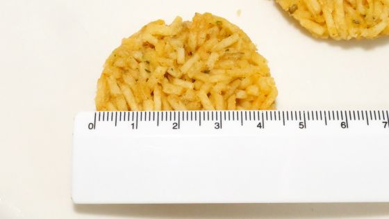 名称はスナック菓子で、原材料には馬鈴薯・チキンブイヨンスープ・レッドベルペッパー・パセリ・アンチョビパウダーなどが使われています。