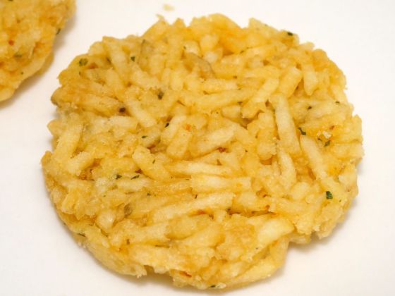 ジャガレットを近くで観察すると、細かく切られたジャガイモが円形にまとまっていることが分かります。