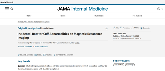「肩が痛い」「腕が上がりにくい」といった症状を訴えて病院でMRI検査を受けると「肩に異常がある」と言われることがあります。ところがフィンランドの一般の人たちを対象にした研究により、40歳を過ぎた成人の約99%でMRIに何らかの「異常所見」が見つかる一方で、痛みや動かしにくさなどの症状との結びつきは弱いことが判明しました。