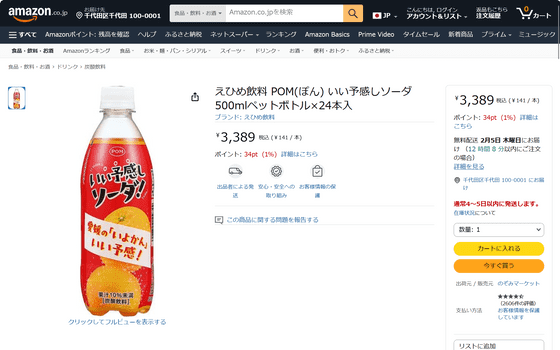「いい予感しソーダ」の価格は税抜180円です。Amazon.co.jpでは24本入りが税込3389円(1本約141円)で販売されています。