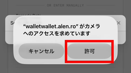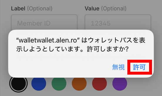 ウォレットパスの追加許可を求められたら「許可」をタップ。