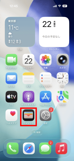 カードの登録手順は以下の通り。まず、iPhoneでWalletWalletにアクセスします。