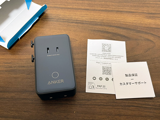 内容物は「Anker Nano トラベルアダプタ(5-in-1,20W)」本体と取扱説明書、保証書類です。