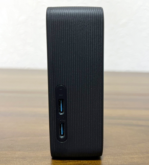 本体の見た目はこんな感じ。正面にはACポートとLEDインジケーター、Ankerのロゴがあります。