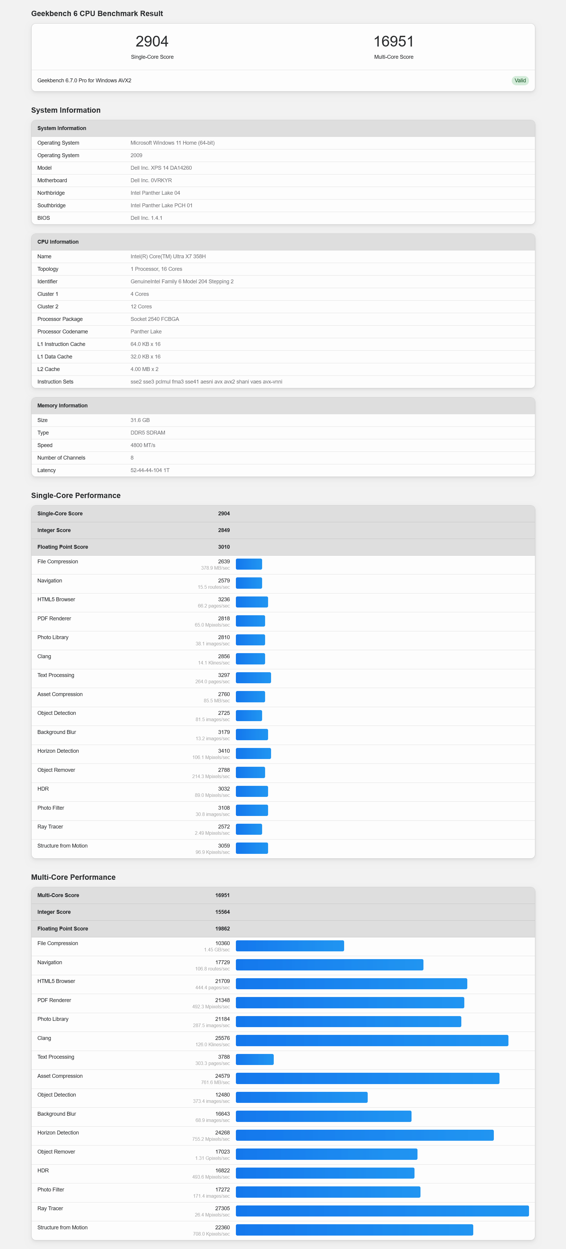 Intel Core Ultra X7プロセッサ搭載のDell XPS 14/16でベンチマークソフトをいろいろ回してスペックを確かめてみた