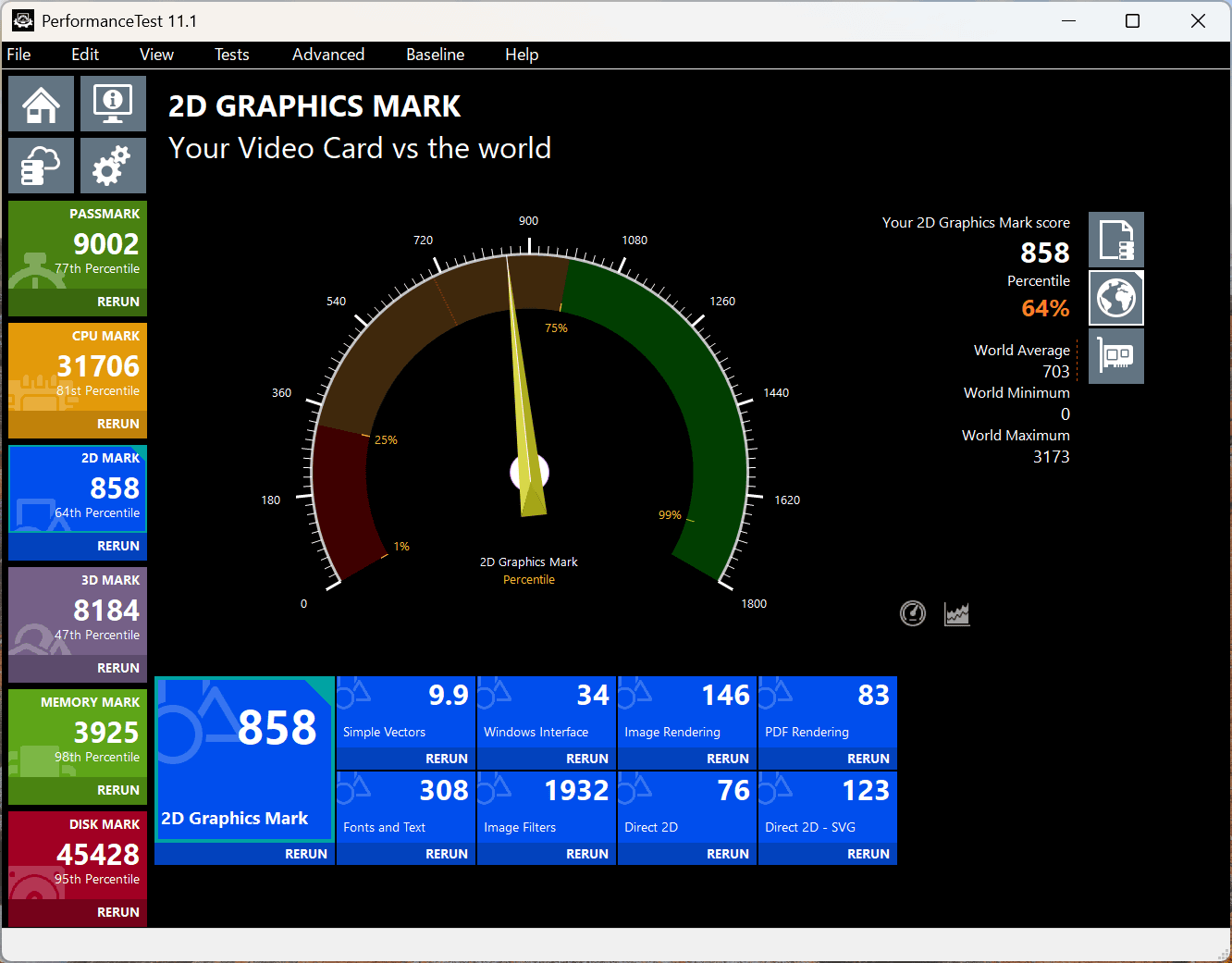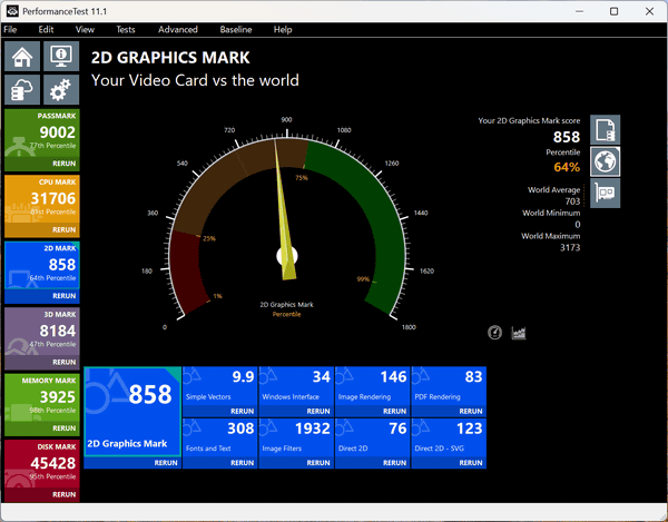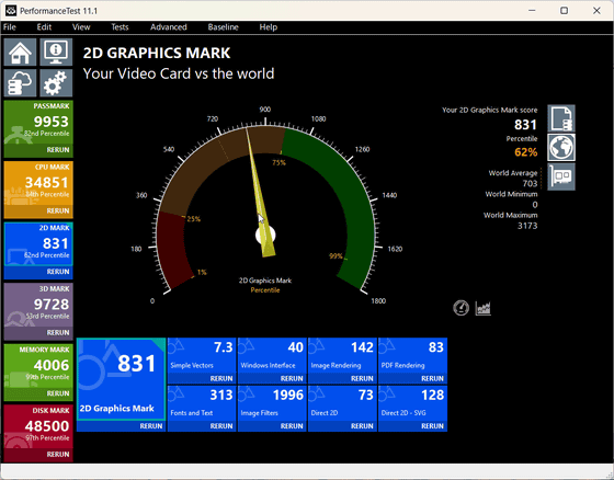 2Dグラフィックスは「831」で、パーセンタイルは62%。