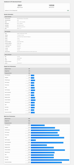 Geekbench 6.7でもベンチマークを測定。CPUのシングルコアパフォーマンススコアは2831、マルチコアパフォーマンススコアは16508でした。