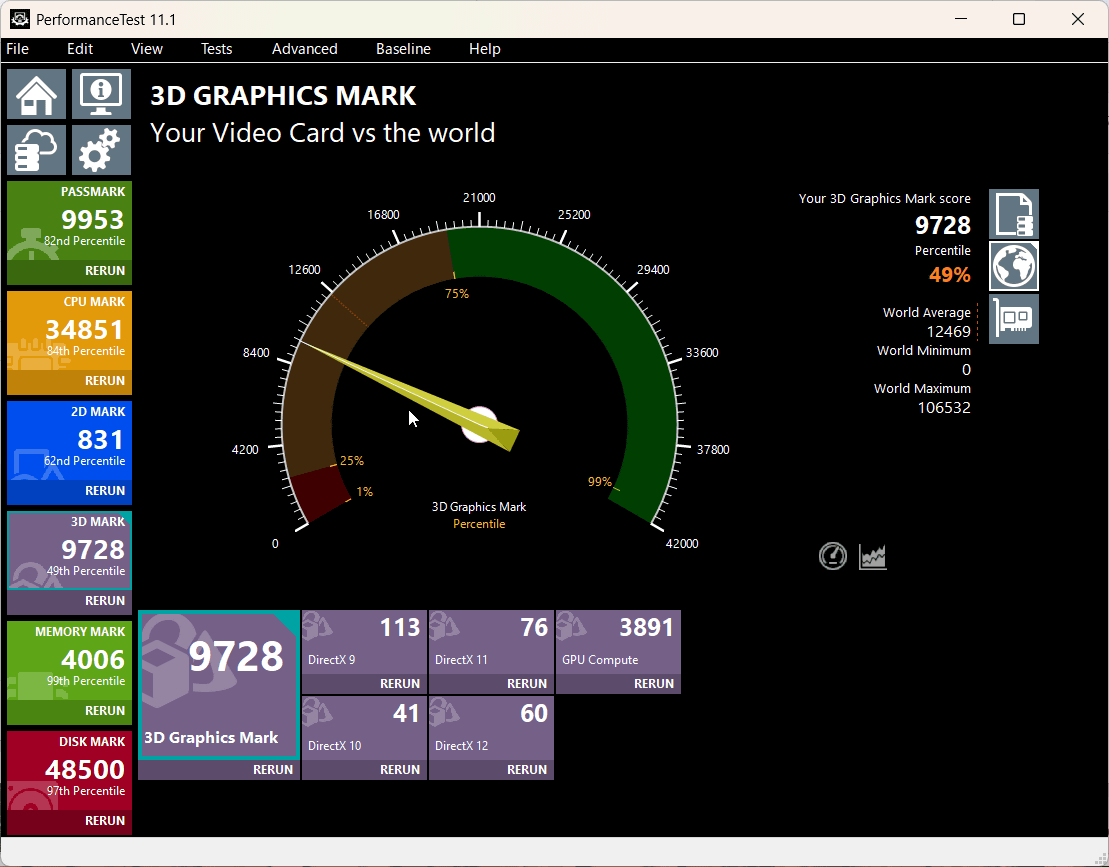 3Dグラフィックスは「9728」で、パーセンタイルは49%なのでちょうど中くらい。