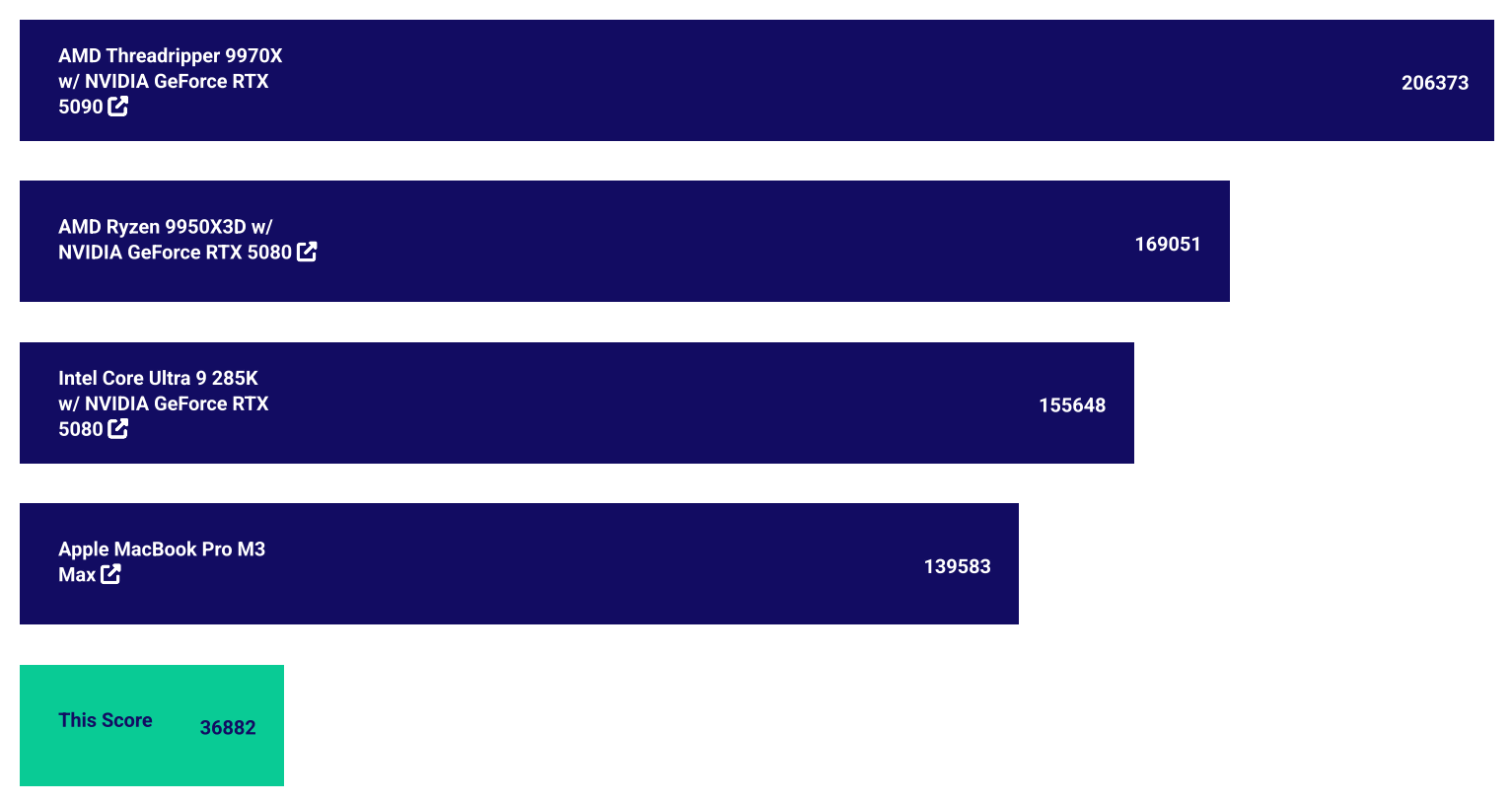 Puget Bench 2.0のスコアは36882で、XPS 14より少し落ちる程度のスコアでした。