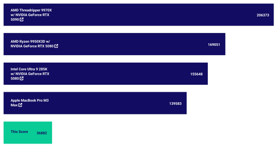 参考として、AppleのM3 Max搭載MacBook Proが13万9583でした。